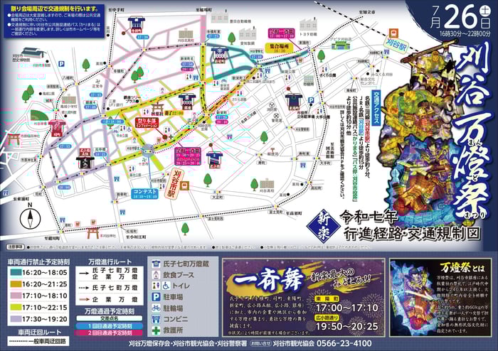 令和7年(2025年)刈谷万燈祭の行進経路・交通規制のご案内は、詳しくは刈谷市観光協会ホームページをご覧ください。
