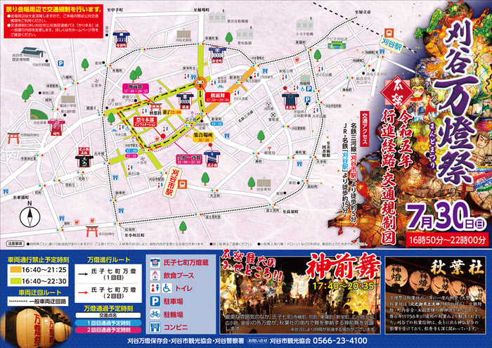 令和5年(2023年)刈谷万燈祭の行進経路・交通規制のご案内は、詳しくは刈谷市観光協会ホームページをご覧ください。